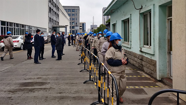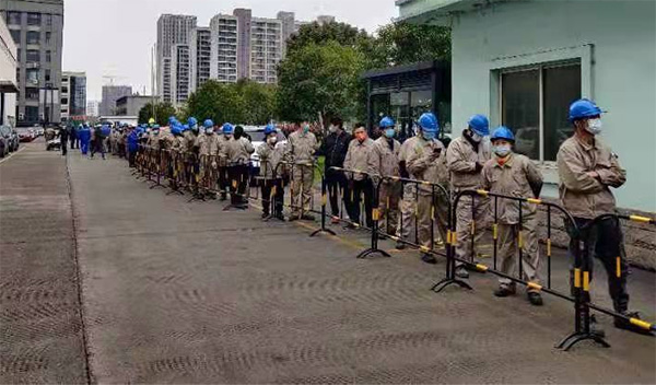 上午10:00收到疫情聯防聯控指揮部通知后,公司黨支部、企管部、安環(huán)部、制造部等快速響應,迅速組織人員展開工作:準備檢測取樣場地、防疫物資、設置隔離圍欄、標志一米線,發(fā)布公司全員核酸檢測通告。